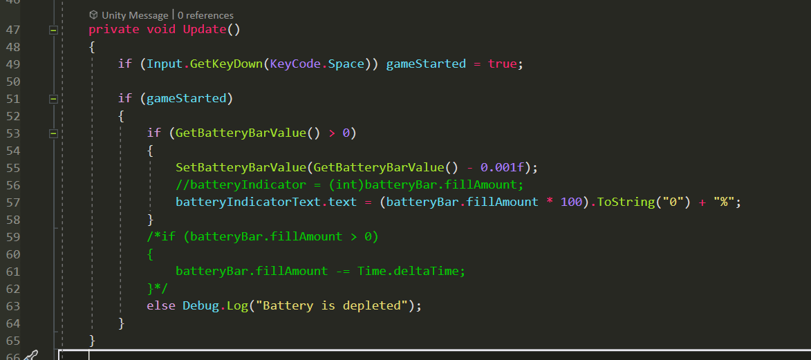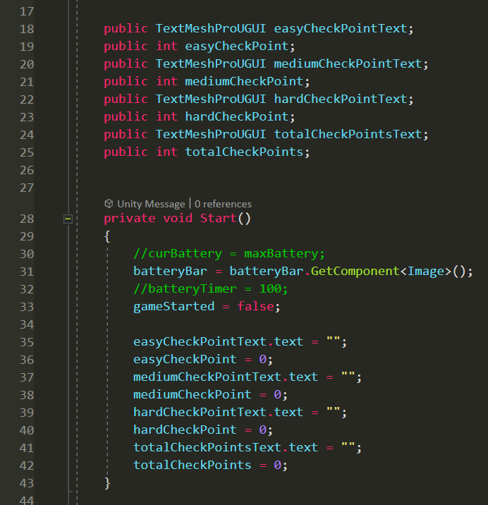 Create script for Drone going through checkpoints to recharge depleting battery. (Battery can simple be run on a timer script that counts down, and every time the drone goes through a checkpoint it’ll just add an int value to the timer.)