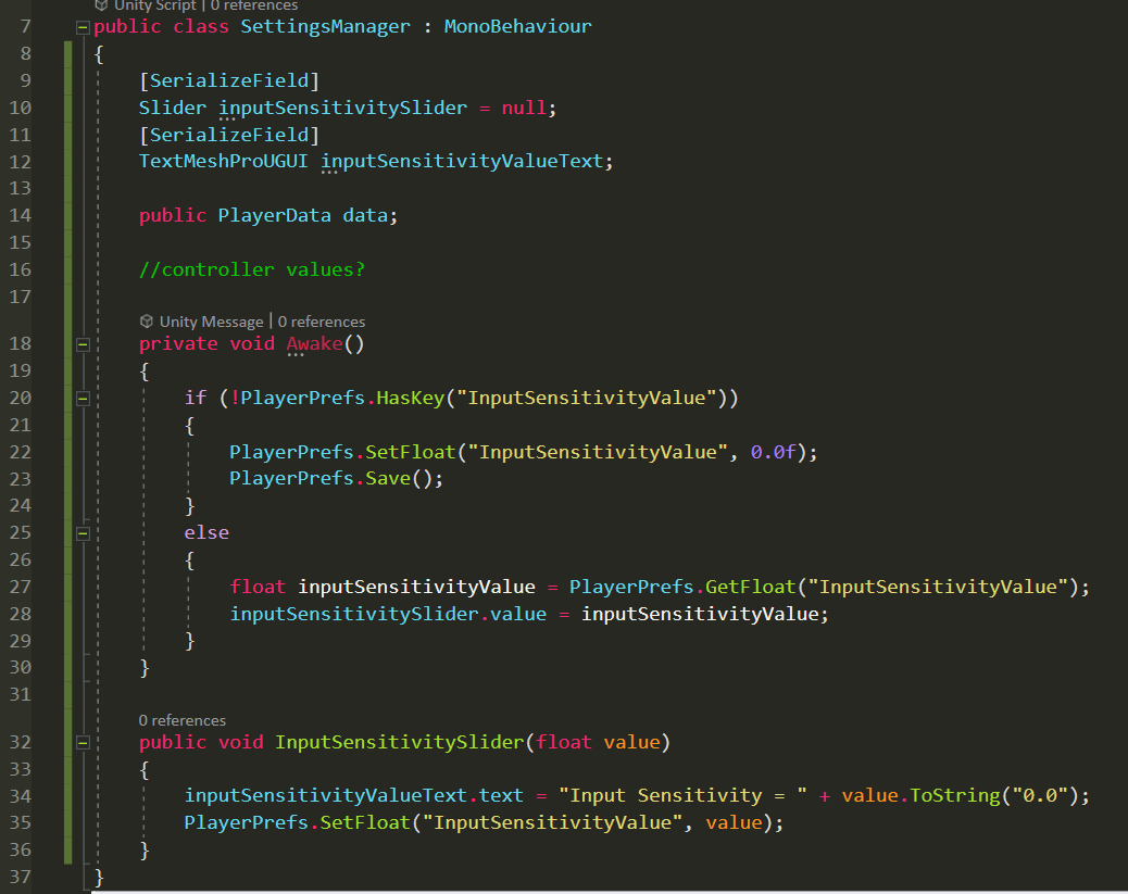 Volume slider now controls volume of game and saves the value to player prefs meaning the player can come back to the game at a later date and it’ll remember the last value it was set at.
