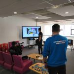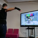 Come the open day, we set up all the mocap and calibrated the suit. We then got the got the performer to perform and we displayed what he was doing on the screen in a game engine called Unity. We had two characters that we could switch between and a background that could also be changed instantly. The characters were rigged and imported then the scripts for making them work in real time with what the performer was doing was added.